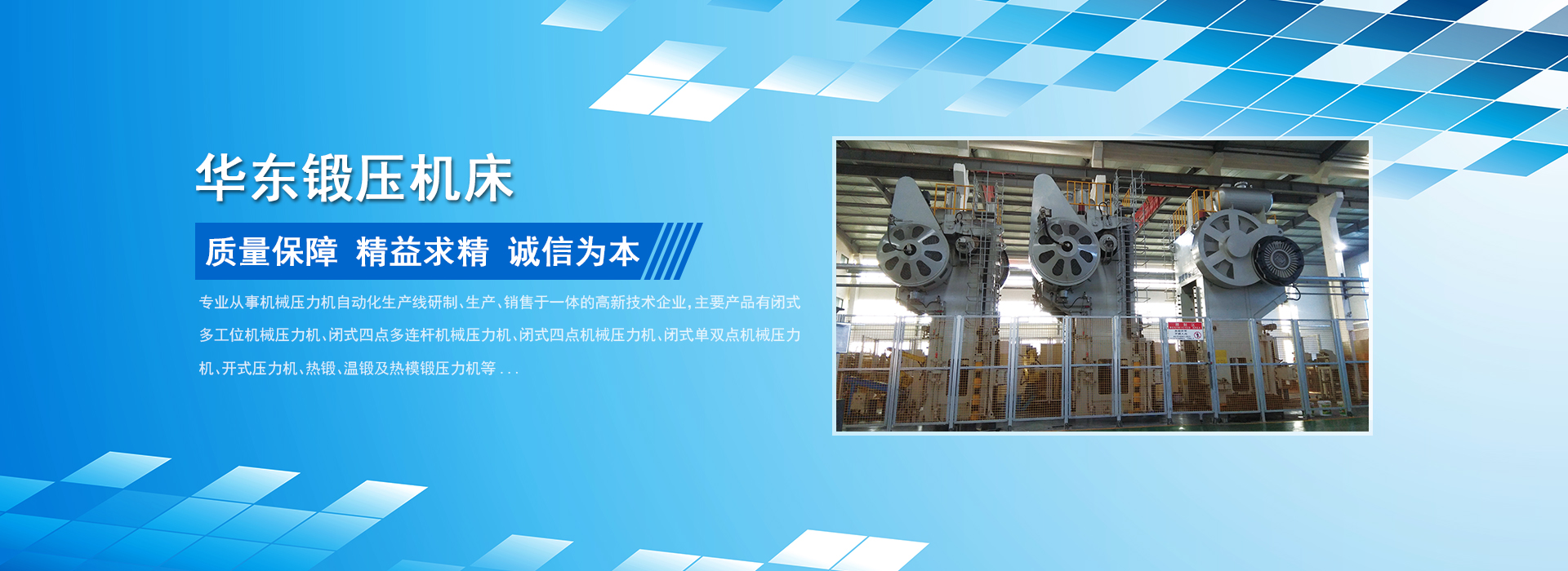 榮成華東鍛壓機床股份有限公司(榮成東源鍛壓機械有限公司)座落在山東半島的最東端,海陸空交通方便,是專業從事鍛壓設備及自動化的研發、生產、銷售,并能為客戶提供個性化、多樣化、系統化服務的高新技術型企業。企業通過工信部的兩化融合、質量、環境、職業健康及知識產權管理體系認證,華鍛牌被授予山東省名牌、山東優質品牌產品。公司總占地面積250000多平方米,一期廠房建筑面積100000平方米,現有員工200余人,其中工程技術人員36人。公司各種加工設備齊全,工藝、檢測手段先進,擁有主要設備300余臺套。可生產閉式多工位機械壓力機、閉式四點多連桿機械壓力機、閉式四點機械壓力機、閉式單、雙點機械壓力機、開式壓力機、熱鍛壓力機及沖壓、鍛造自動化設備等百余個規格型號的產品...